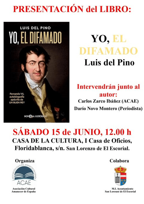 El próximo sábado 15 de junio, a las 12:00, estaré en la Casa de la Cultura de El Escorial presentando el libro de ‘Yo, el Difamado’. Os espero.